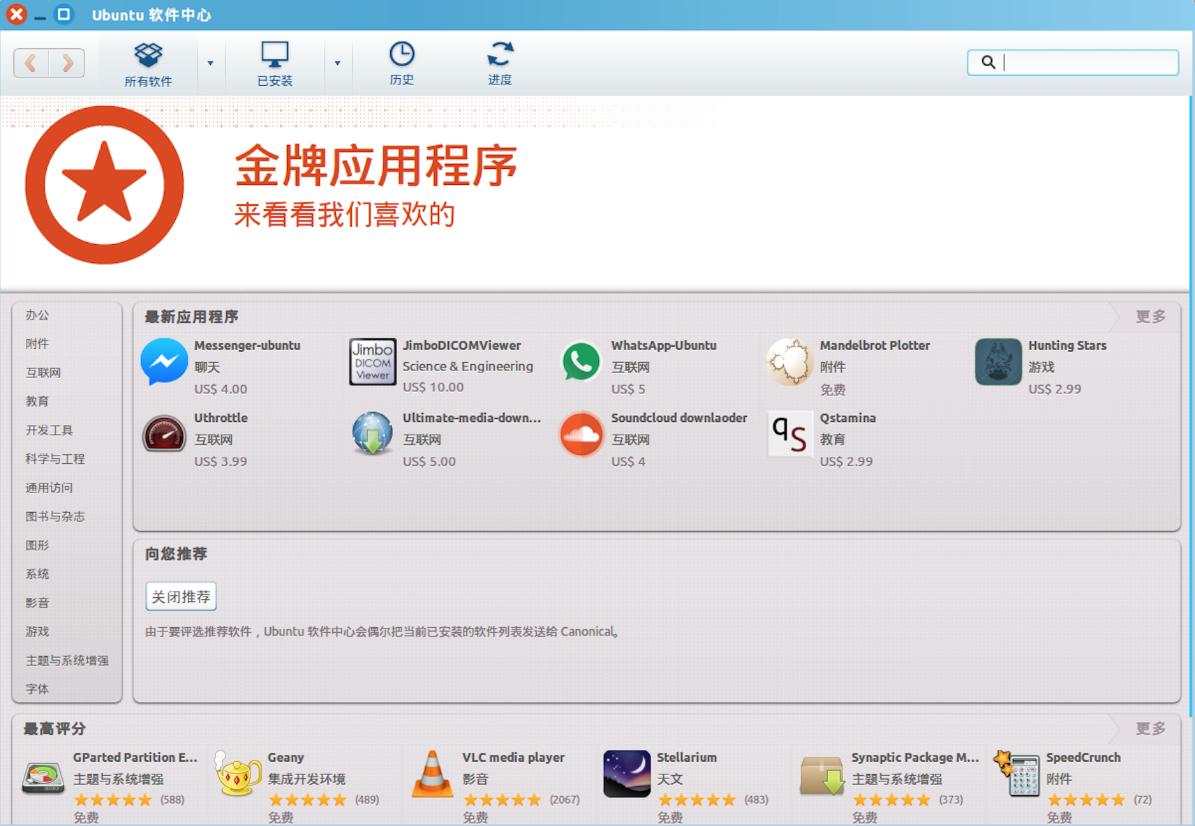 打开软件中心后,呈现如下界面