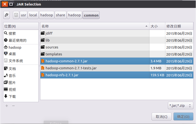 (1)”/usr/local/hadoop/share/hadoop/common”目录下的hadoop-common-2.7.1.jar和haoop-nfs-2.7.1.jar;