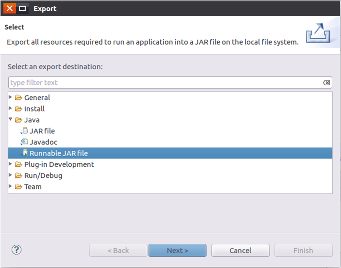在该界面中,选择“Runnable JAR file”,然后,点击“Next>”按钮,弹出如图4-17所示界面。