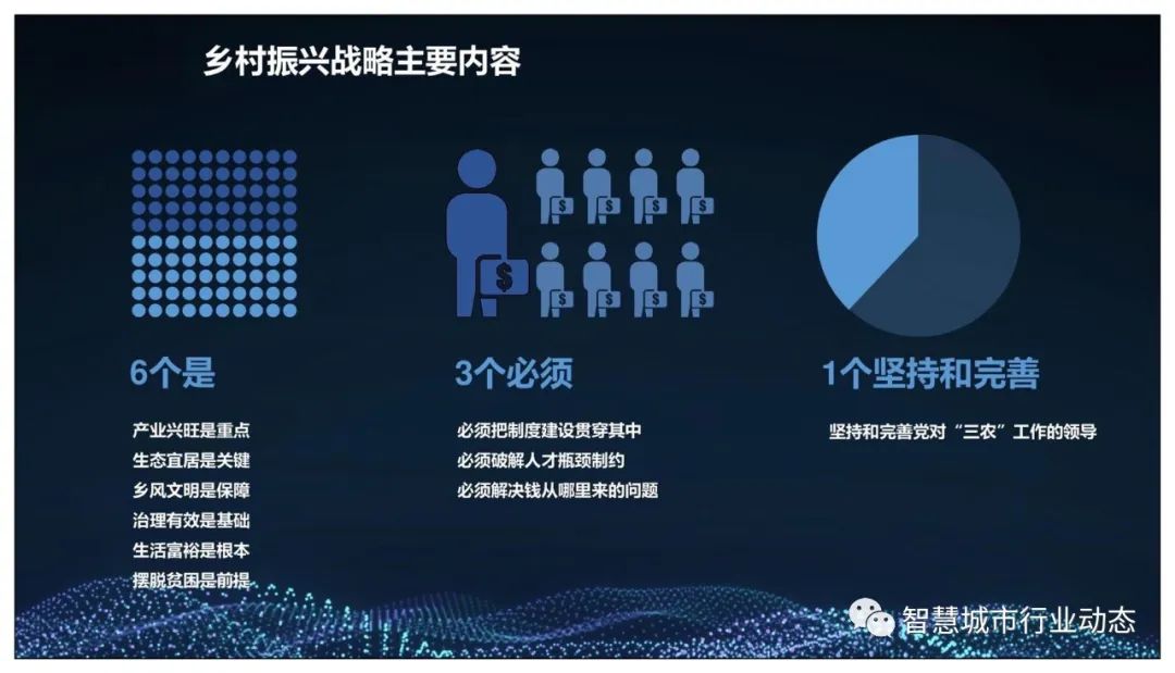 乡村振兴大数据围绕“3个是、6个 必须、1个坚持和完善”,充分结合地理信息、大数据、 物联网、互联网等支撑技术,