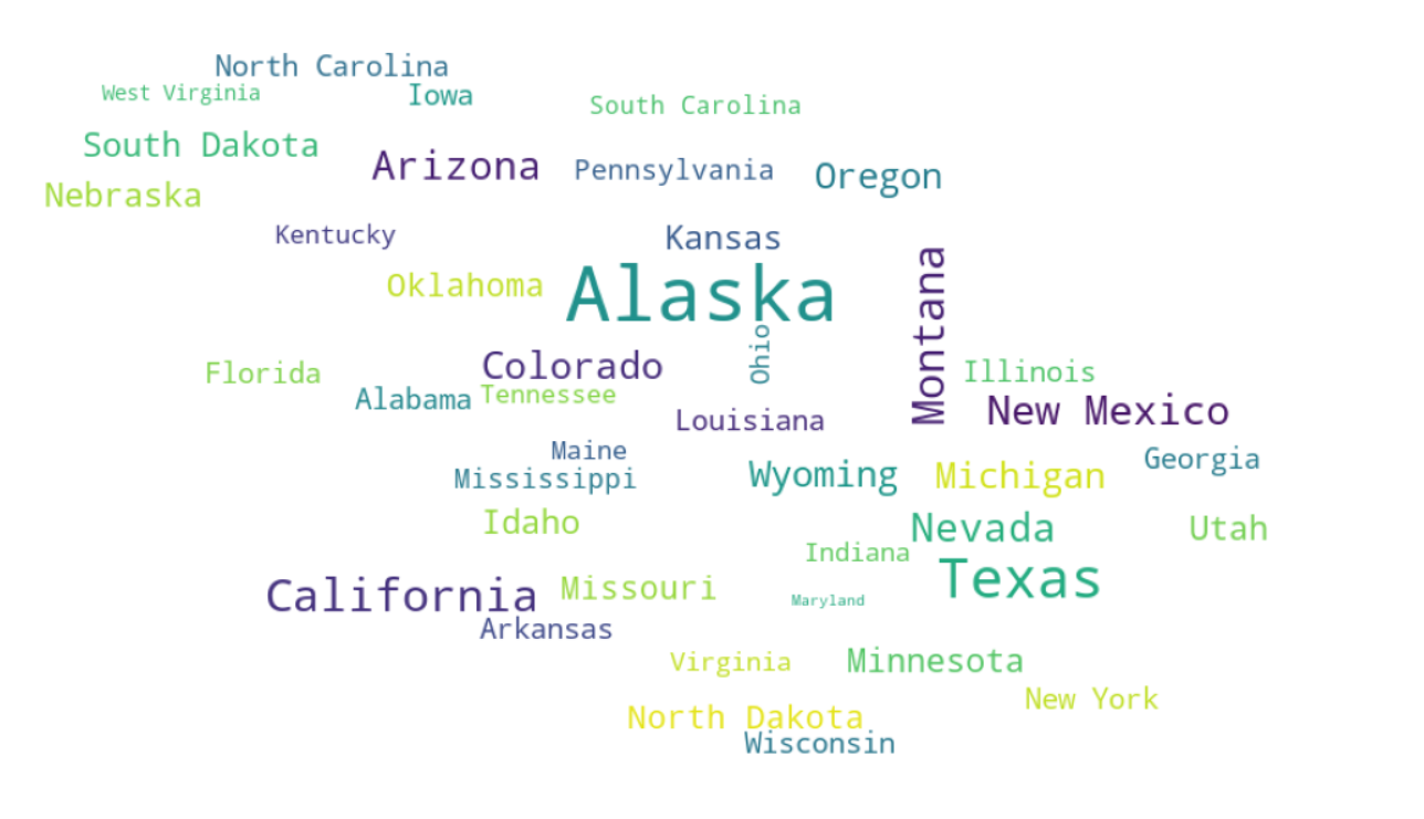 – State:指对应郡县所属的州,比如有Alabama(亚拉巴马州)、Alaska(阿拉斯加州)等。