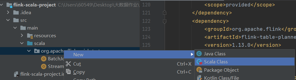 选择open as project,然后在pom.xml中添加如下内容(table API和csv格式相关的依赖包)并更新