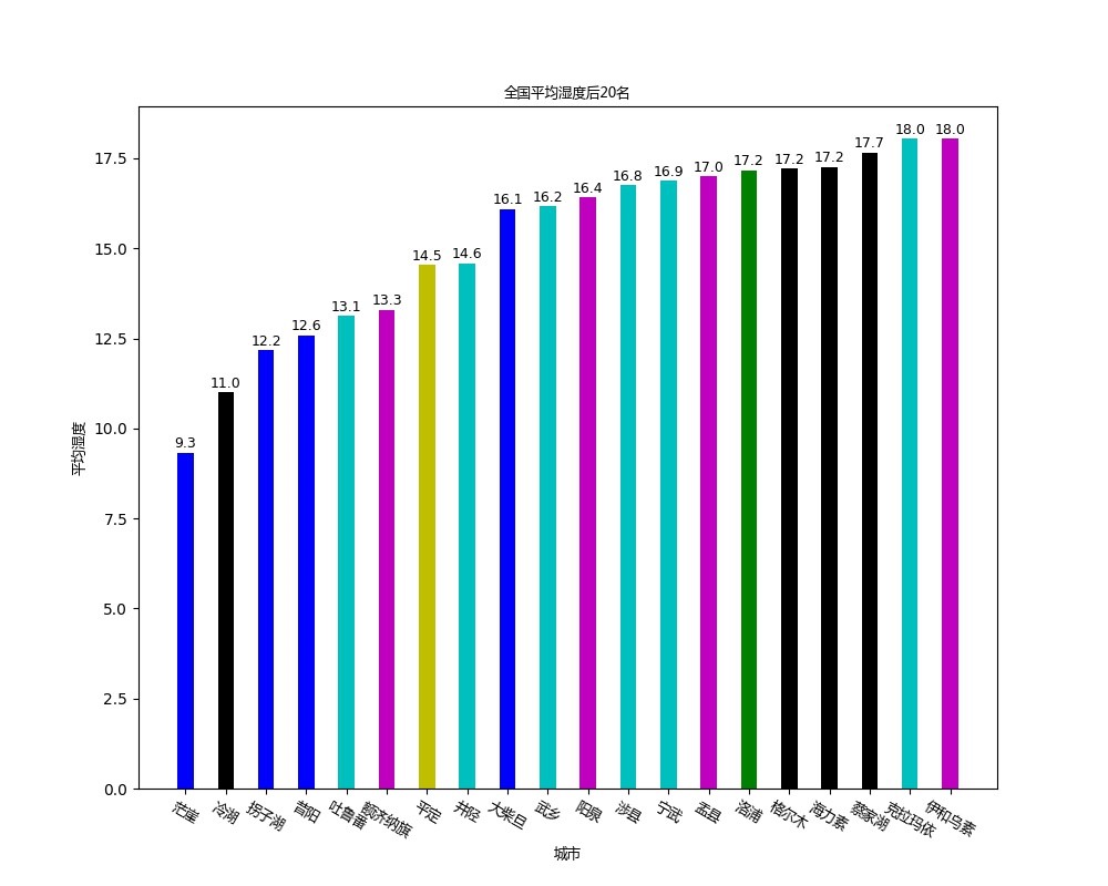 plt.title("全国平均湿度后20名", fontproperties = font)